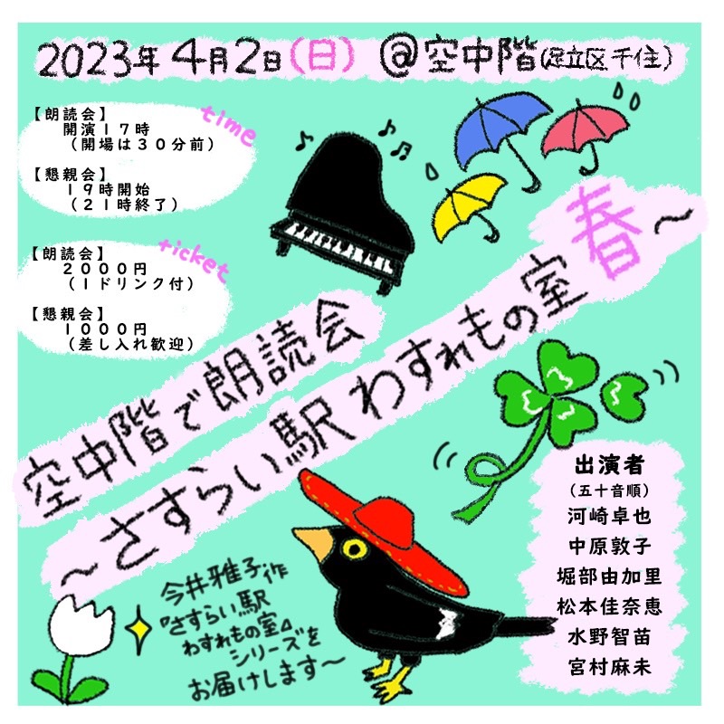 Clubhouseで出会った作家と朗読仲間。春の日に読み手6人が素敵な空間に集まり、心温まる物語をお届けします。